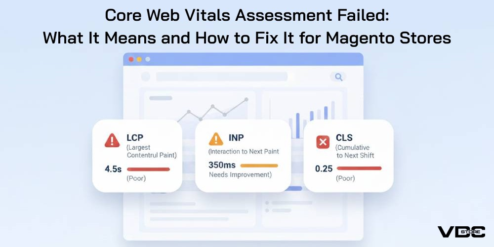 At VDCstore, we help merchants optimize Magento performance through smart extensions, clean architecture, and proven optimization techniques. In this guide, we’ll explain what Core Web Vitals are, why the assessment fails, and how to fix Core Web Vitals issues effectively to improve both SEO and user experience.
