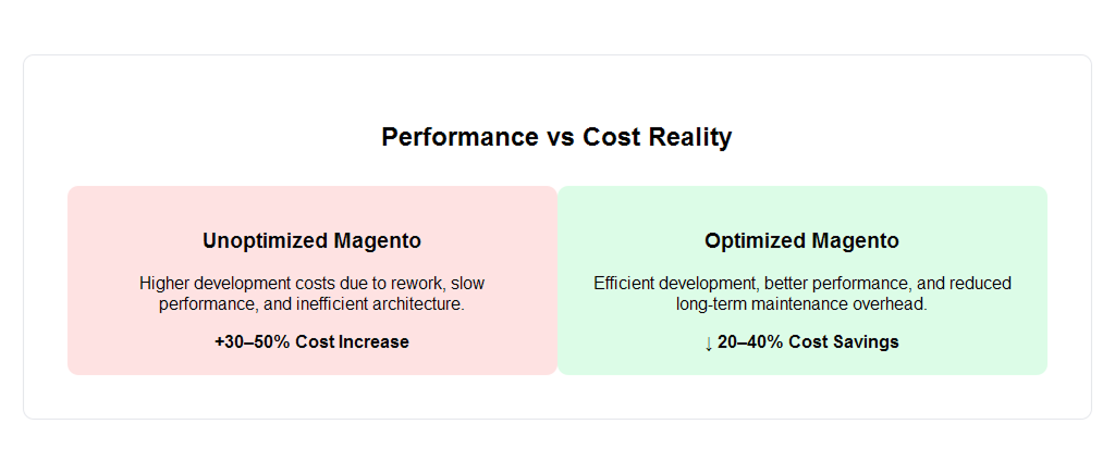 Magento projects without structured optimization strategies can see cost increases of 30–50% over time.