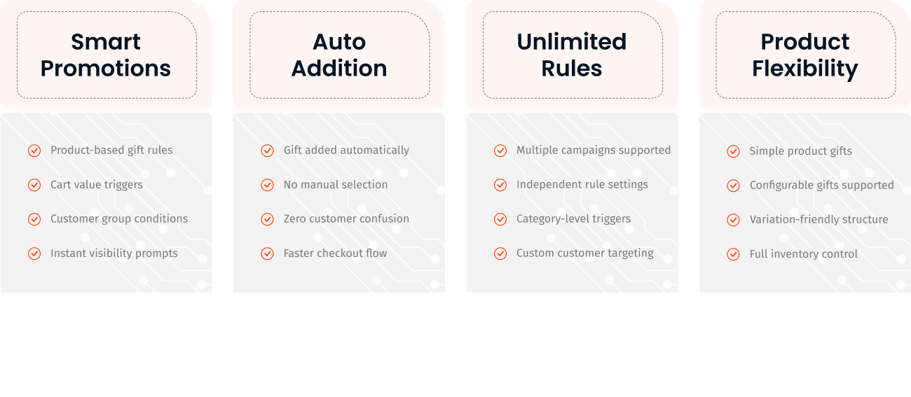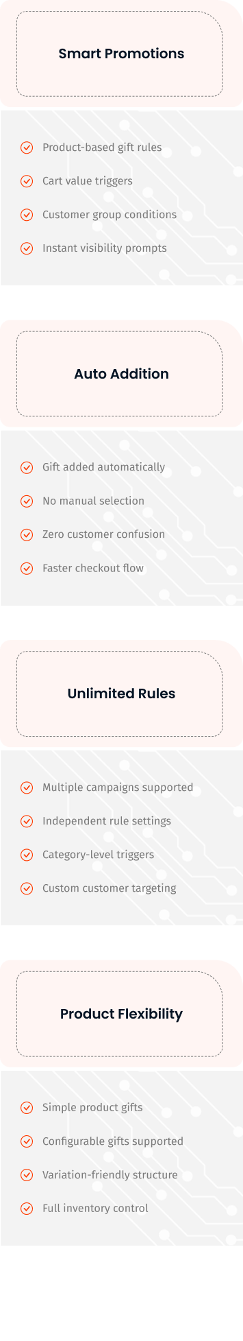 This Free Gift extension immediately lifted our conversion rate. The automatic gift addition feels seamless for customers, and setting up multiple promo rules was unbelievably simple. It’s one of the most effective promotional tools we’ve added to our Magento store.