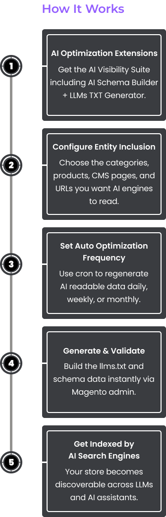 | Cron Based Regeneration | Keeps AI data synced automatically. |