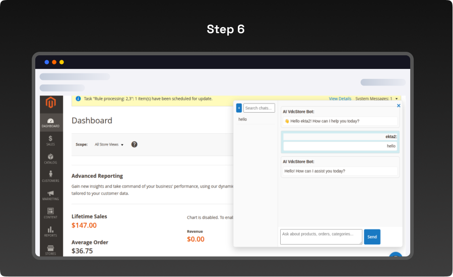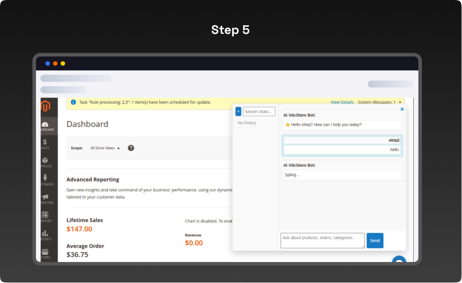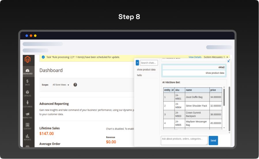 Vdcstore Aichatboat for Magento 2 is a smart AI helper built right into your Magento admin panel. It lets you see and understand your store data using simple, everyday language — no coding or SQL needed.