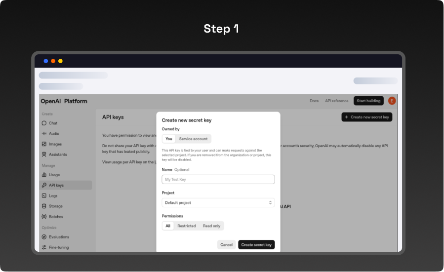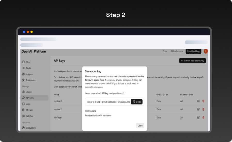 - Copy the key and paste it to the field “OpenAI API Key” shown in the first step.