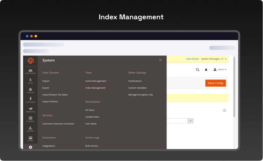 - Go to the System -> Index Management