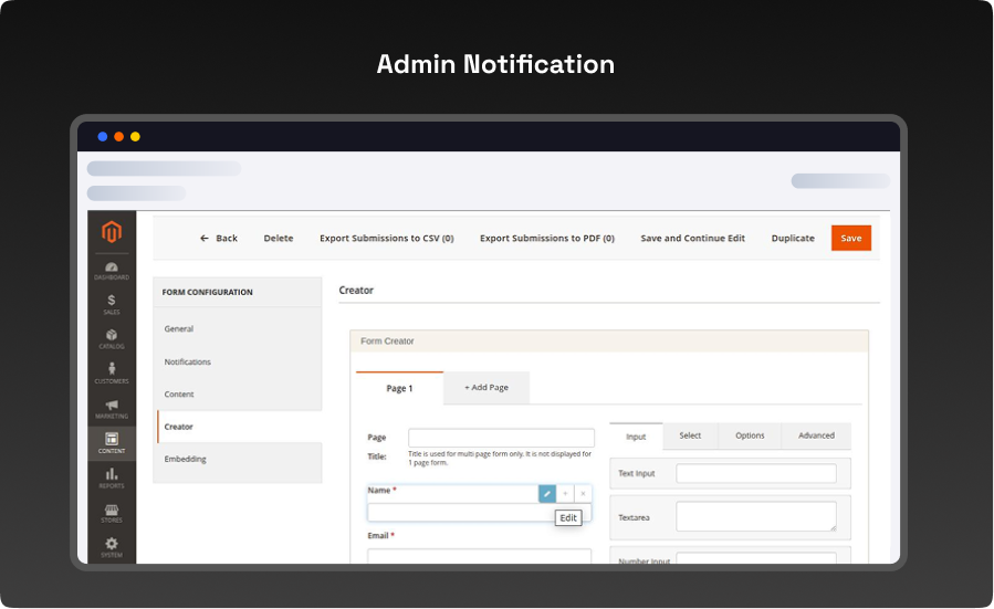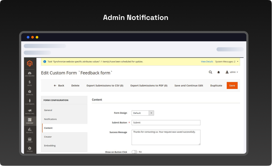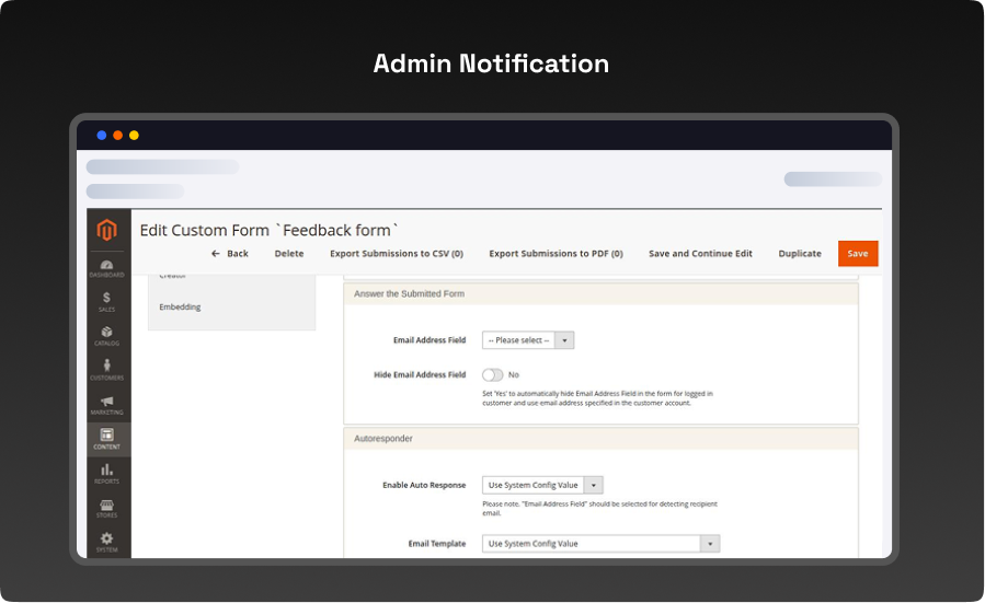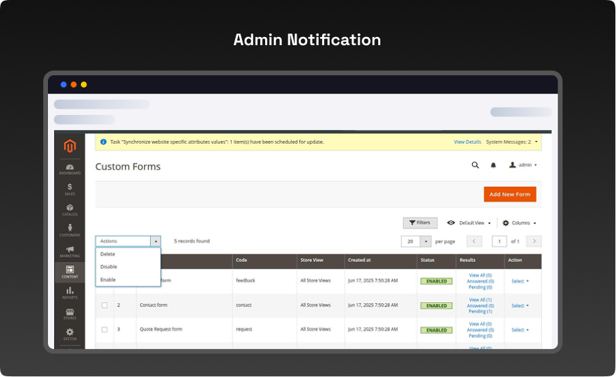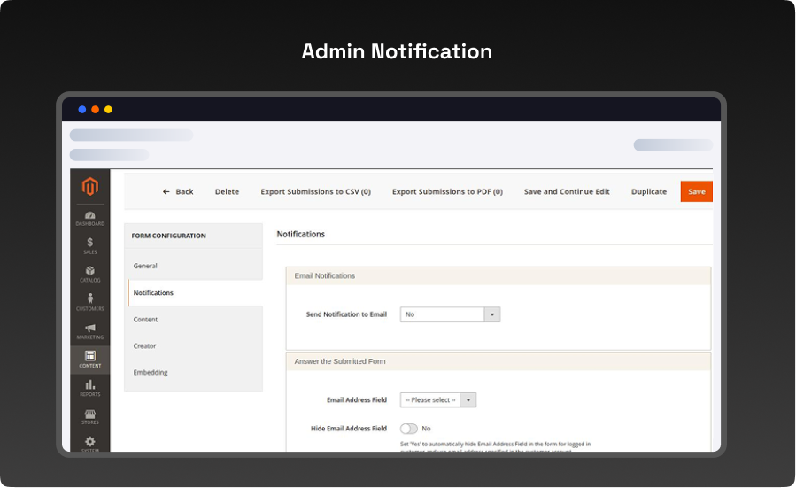 - Send Notification to Email – Enable this option to notify store admins whenever a new form is submitted.