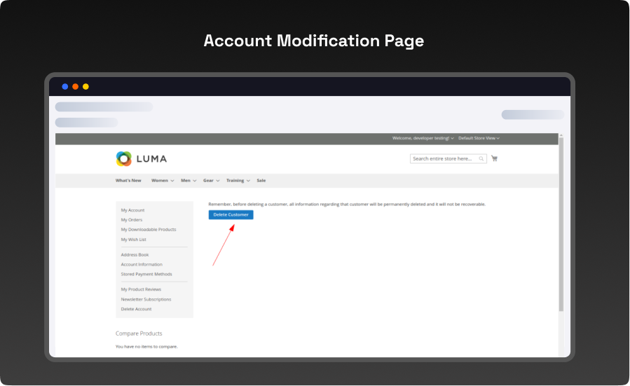 - Authorize shoppers to delete their accounts eternally and securely from your eCommerce Store.