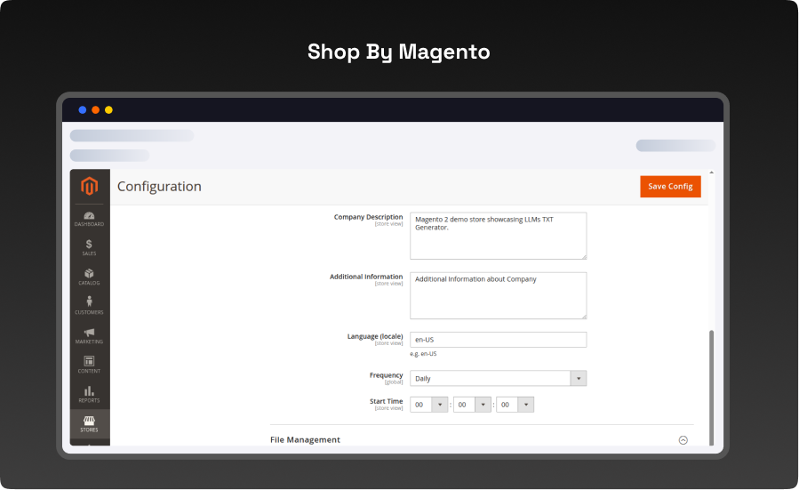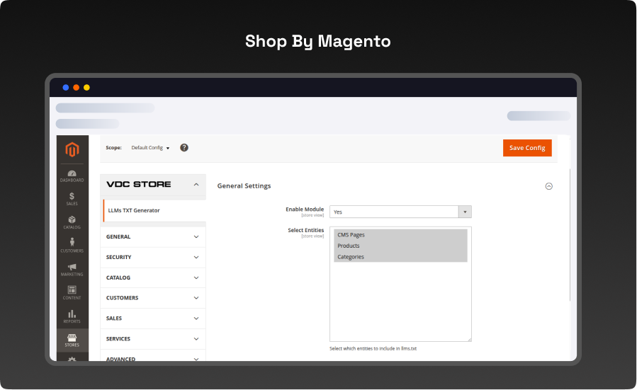 - Simple Magento Integration: Manage and generate llms.txt directly from your Magento 2 admin panel with no coding required.