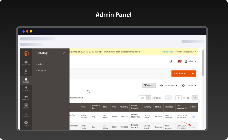 - Go to Admin Panel > Catalog > Categories.