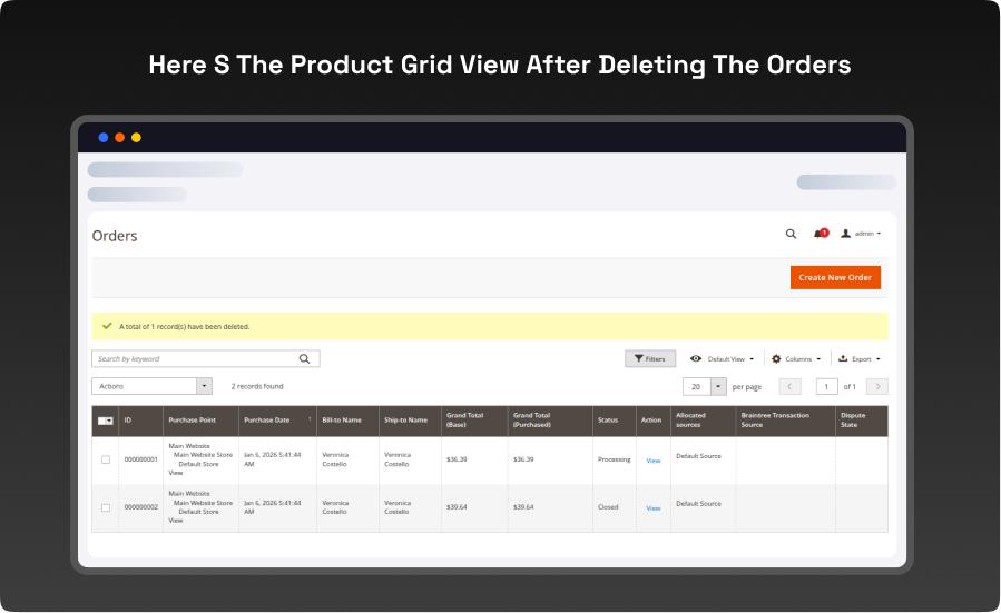 The Magento 2 Delete Order Extension allows store admins to easily delete unwanted or test orders from the backend. It helps maintain a clean and organized order grid, improves efficiency, and ensures accurate reporting. Manage your store effortlessly with this simple yet powerful tool!