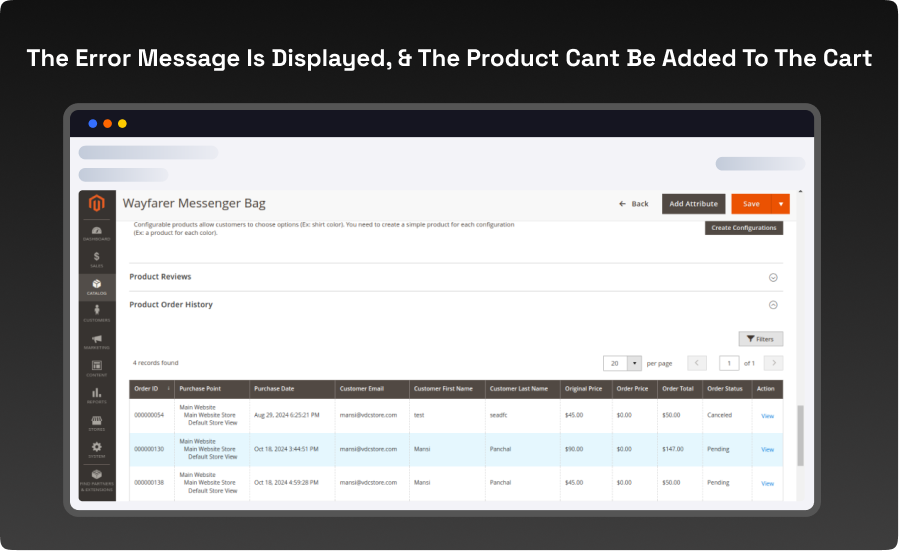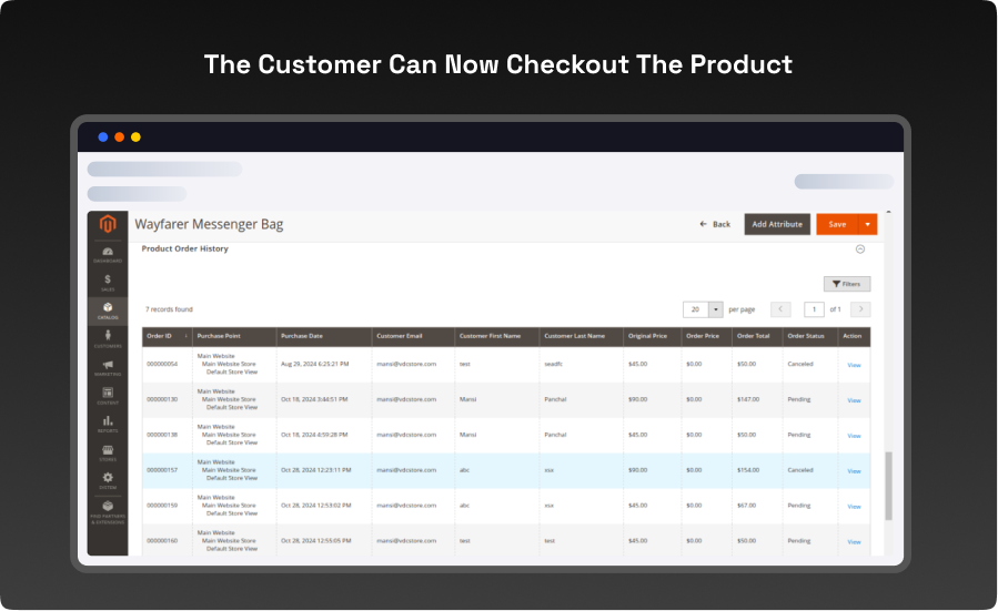 Our Magento 2 Product Order History offers admins to keep a check on the track record of products by viewing their order history. It ameliorates the inventory management of the store by checking the sales of a particular product. This feature also helps with marketing campaigns for specific products depending on sales information. It gives the convenience to Admin to view order details and customer account information from the product order history grid.