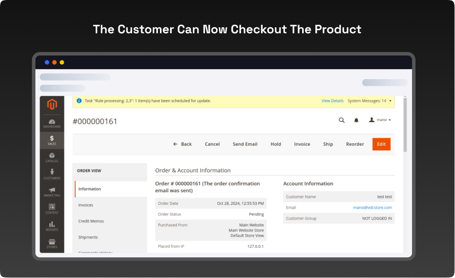 - Admin can View each order details and customer account details from the product order history grid./li>