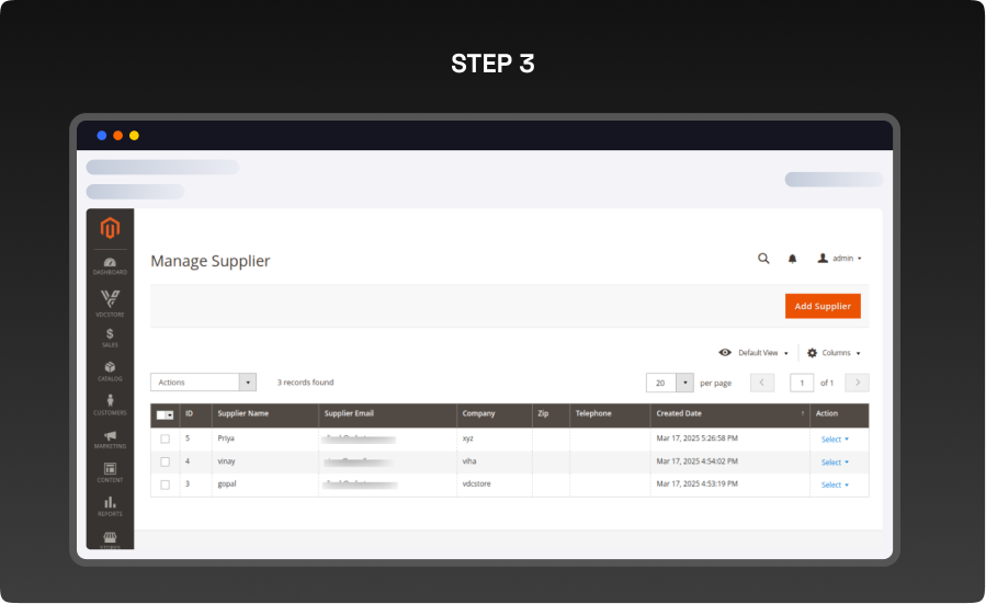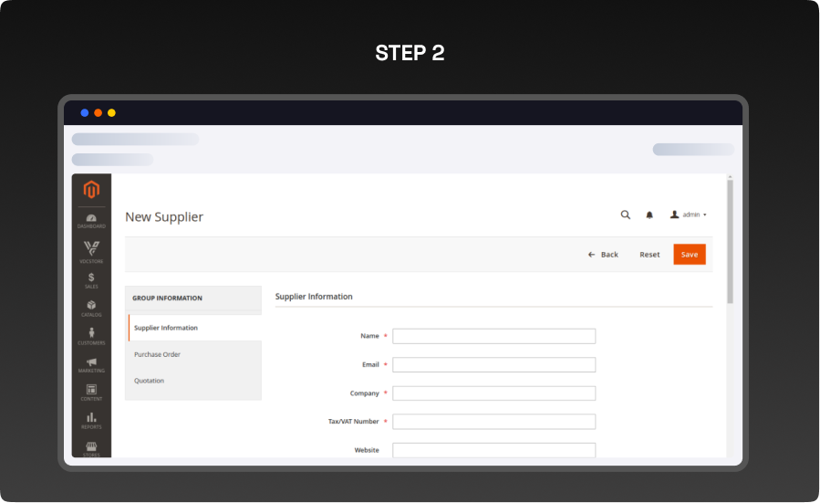 - Navigate through Vdcstore > Purchase Order > Manage Suppliers > Add Supplier.