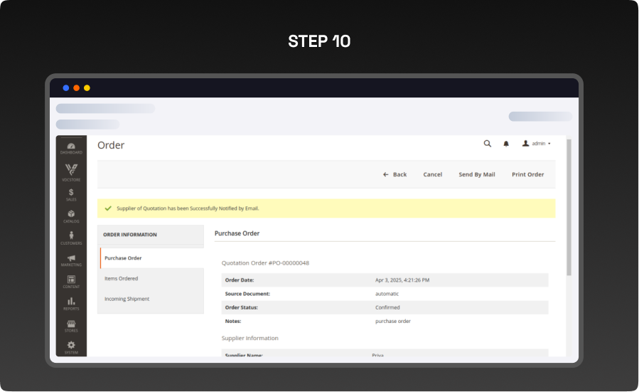 - Once you send the email using the Send By Mail button, the supplier will be notified.