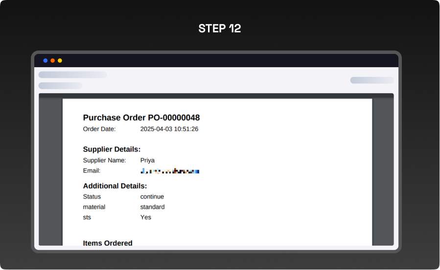 - Send quotations and purchase order emails directly to suppliers for quick communication.