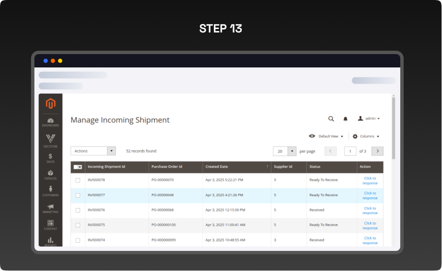- To view and manage Incoming Shipments navigate to Vdcstore Purchase Order