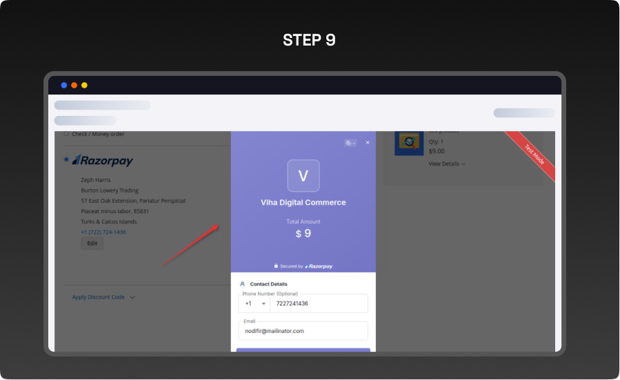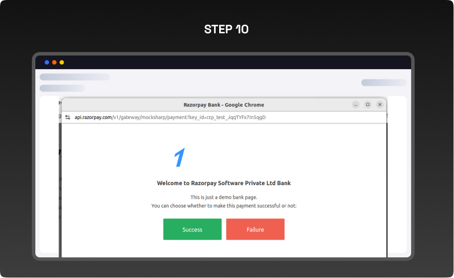 - You can choose to display success or failure options as needed. Note: This option is only available in test mode.