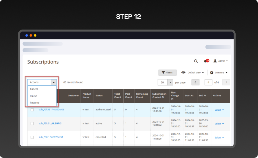 - Select your actions for all the customers, such as Cancel, Pause, or Resume.