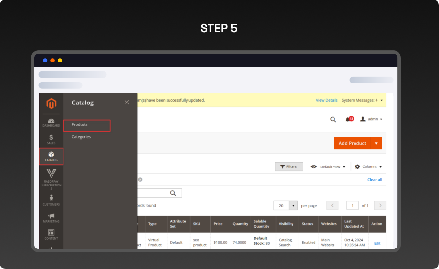 - Go to Catalog > Products Here, you will see your virtual order products, and select subscription mode .