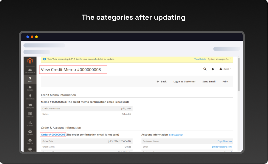 - See the Credit Memo/ Order number Credit Memo number and order number displaying which displayed on the Credit Memo page. You can see the difference.