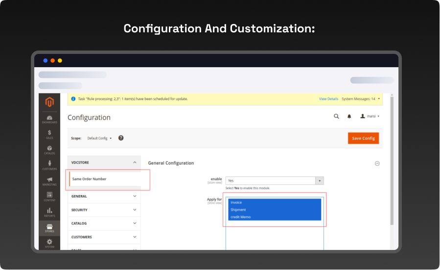 - Login to Magento Admin Stores > Configuration > VDCSTORE extensions > Same Order Number