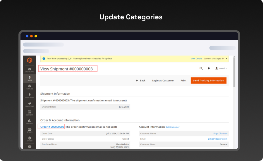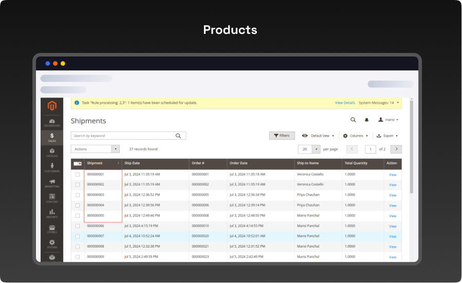 - Go to Shipments -> See the Shipment number -> Same Shipment number displaying adding automatic prefix and number for the same orders.