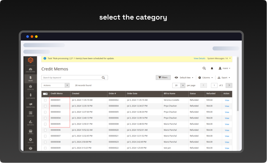 - Go to Credit Memos -> See the Credit Memo number -> Same Credit Memo number displaying adding automatic prefix and number for the same orders.