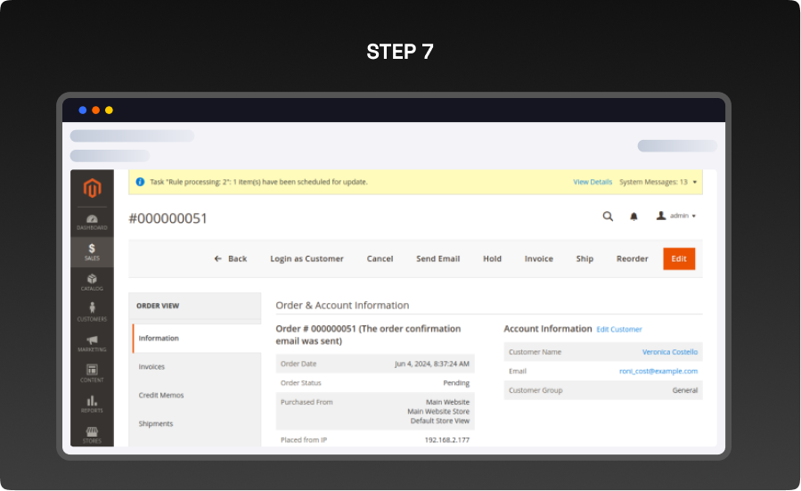 - It shows the order view where shipping details and Handling information are available and visible along with your other order details on frontend as well as backend.