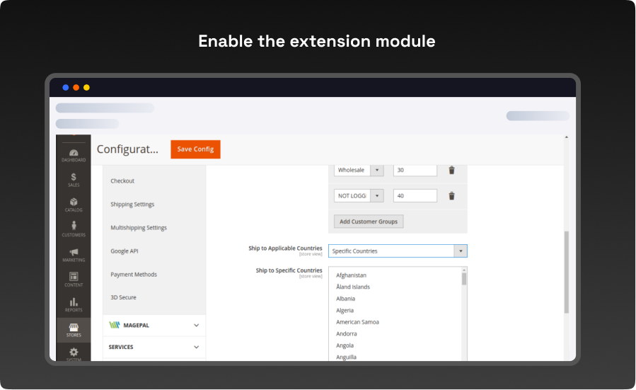 - Add customer groups and their specific shipping rates.