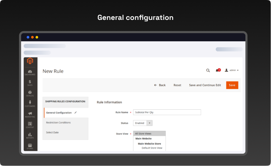 - Select which stores are applicable for this rule. To import the rule to any store, leave the field empty or pick All. This feature is extremely handy for global scale businesses that have multiple online stores.