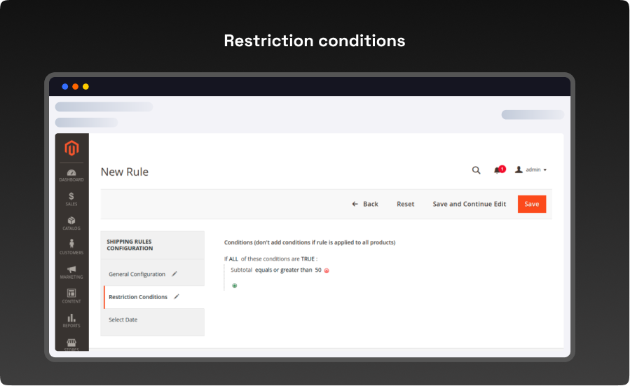 - Provide the name of a restriction rule that will be displayed in the admin area. It will be visible on the grid.