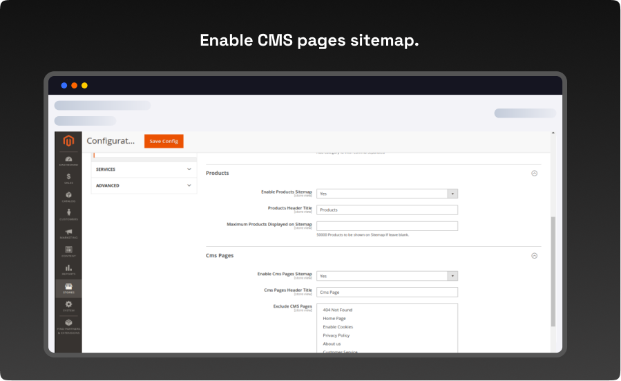 - Enable CMS pages sitemap.