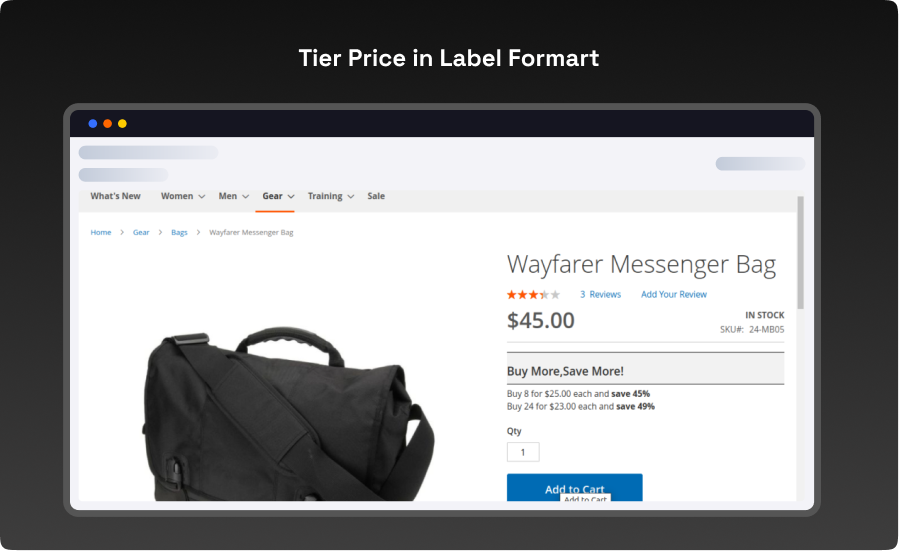 - Tier Price in Label Formart : Label format is supported by default by Magento. Users can see quantity based discount from here.