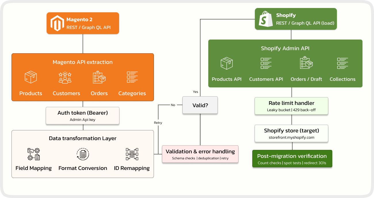 We handle the entire Magento to Shopify Migration for you from planning and data transfer to testing and go-live. You stay focused on your business.