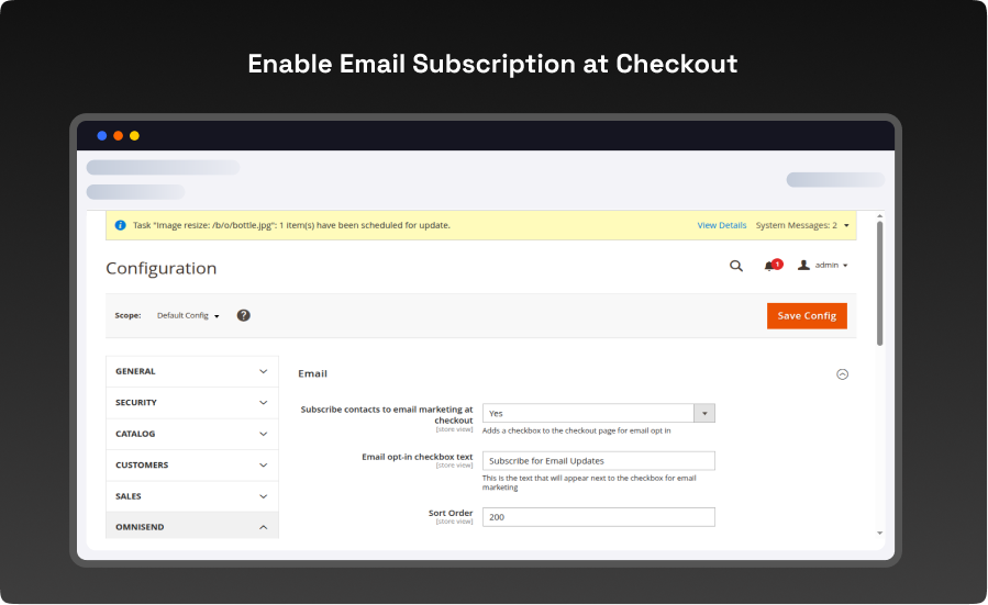 Enable Email Subscription at Checkout: