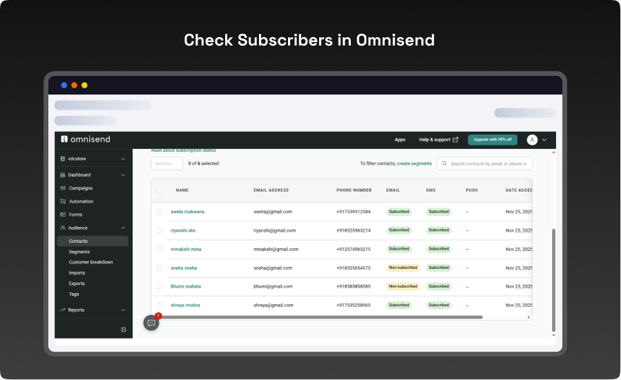 Check Subscribers in Omnisend: