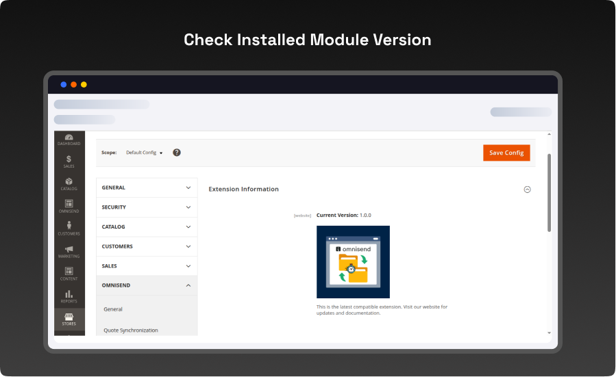 - Open the Admin > stores > configuration > Omnisend > VDCSTORE section to view the installed module version.