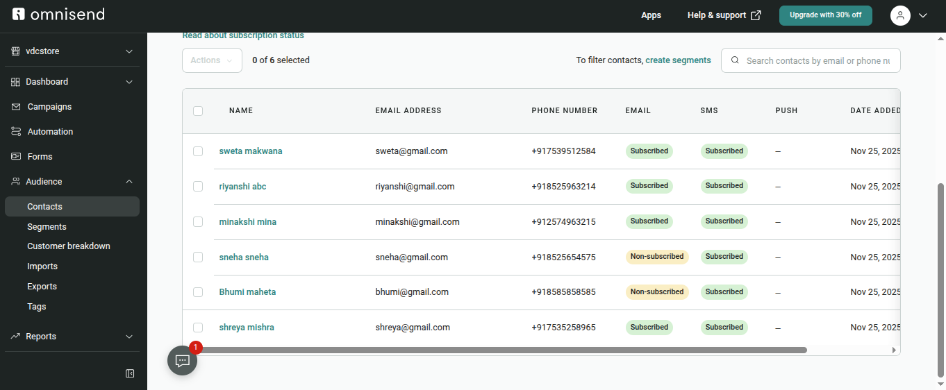 - Check Subscribers in Omnisend: